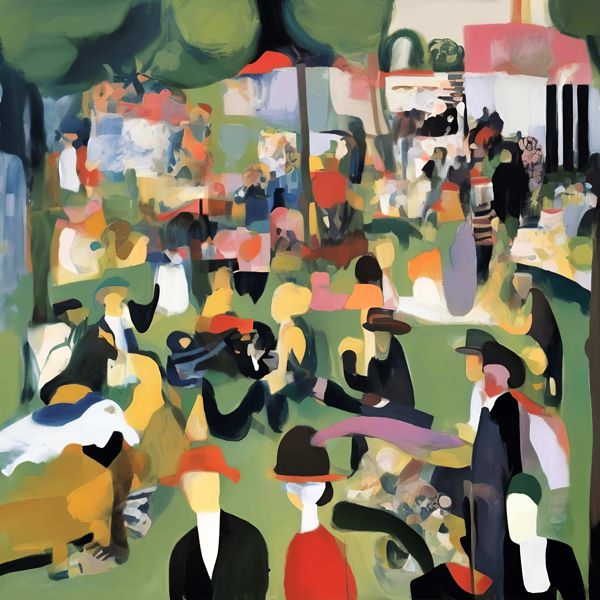 This image was created by ‘Kanabstracd,’ an art unit formed by the creator and the AI (Stable Diffusion XL 1.0 (1024), a program for creating AI artworks). I gave the program the word ‘Kanabstracd absurdism Seurat’ as a prompt and let it create. Also “mesh ” was used as the negative prompt.