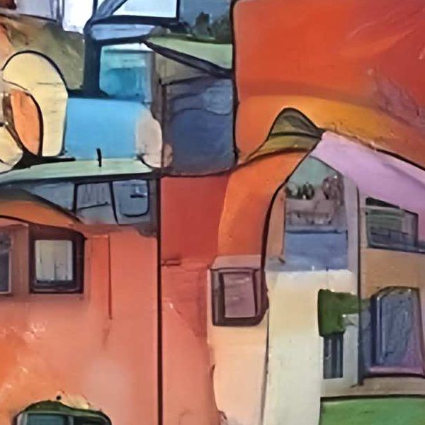 制作者と AI (AI アート作成用のプログラム Stable Diffusion XL 1.0 (1024)) とからなるアートユニット カナブストラクド によるアート画像です.そのプログラムに「Kanabstracd surreal Hundertwasser」ということば (prompt) をあたえて創造させました. 負のプロンプトとして「Hundertwasser woodgrain」を指定しています.
