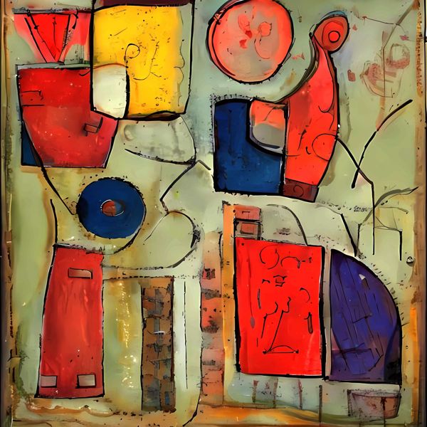 制作者と AI (AI アート作成用のプログラム Stable Diffusion 2.1 (768)) とからなるアートユニット anonymous による画家風のアート画像です.そのプログラムに「Klee」ということば (prompt) をあたえて創造させました. 負のプロンプトとして「infinite」を指定しています.