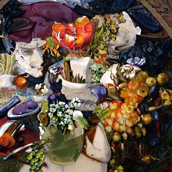 制作者と AI (AI アート作成用のプログラム Stable Diffusion 2.1 (768)) とからなるアートユニット anonymous による画家風のアート画像です.そのプログラムに「Arcimboldo Bosch Bosch」ということば (prompt) をあたえて創造させました. 負のプロンプトとして「Arcimboldo_Bosch_Bosch」を指定しています.