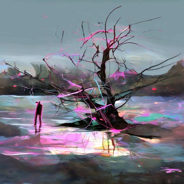 これらの画像は通常の AI アートとはちがう独自の方法を使って作っています. AI アートは AI にプロンプト (または呪文) とよばれる英語の記述をあたえて作画した画像ですが, Stable Diffusion,DALL・E 2,Midjourney などの AI プログラムによって 2022 年に爆発的に普及しました. AI アートで望む画像を作るために通常は比較的細かい指示を与えます. しかしデイシンではおもに 1〜4 語程度の短いことばや造語を Stable Diffusion XL 1.0 (1024) を使用している OpenArt,NightCafe などのウェブサイトで使用して,そのプログラムがもつ知識をいかして自由に (ジェネラティブに,創発的に) 画像をつくらせています. コントラストの調整等はしていますが,描きなおさせたり加筆したりするようなことはしていません.