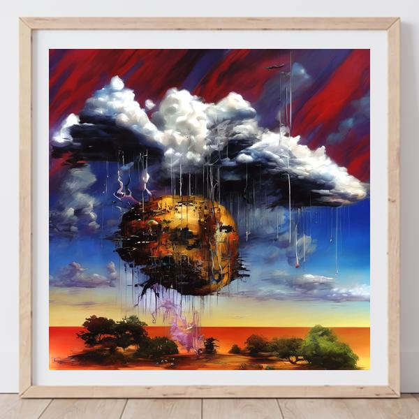 制作者と AI (AI アート作成用のプログラム Stable Diffusion XL 1.0 (1024)) とからなるアートユニット カナブストラクド によるアート画像です.そのプログラムに「Kanabstracd surrealism thunder」ということば (prompt) をあたえて創造させました. 負のプロンプトとして「thunder」を指定しています.