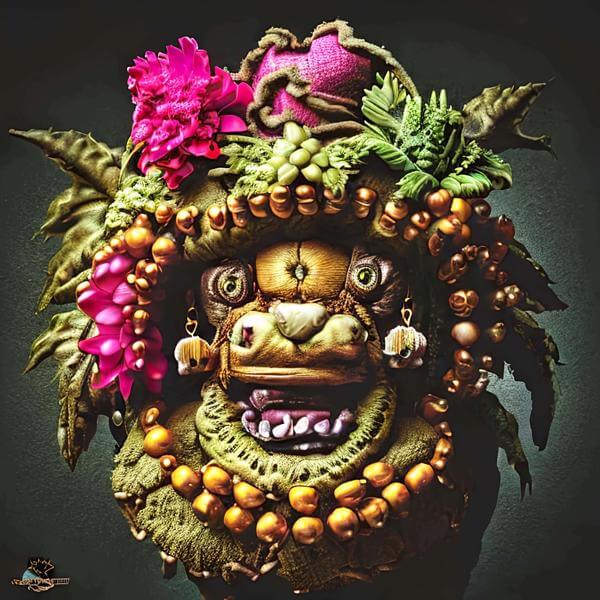 制作者と AI (AI アート作成用のプログラム Stable Diffusion 2.1 (768)) とからなるアートユニット anonymous による画家風のアート画像です.そのプログラムに「arcimboldo」ということば (prompt) をあたえて創造させました. 負のプロンプトとして「arcimboldo severini」を指定しています.