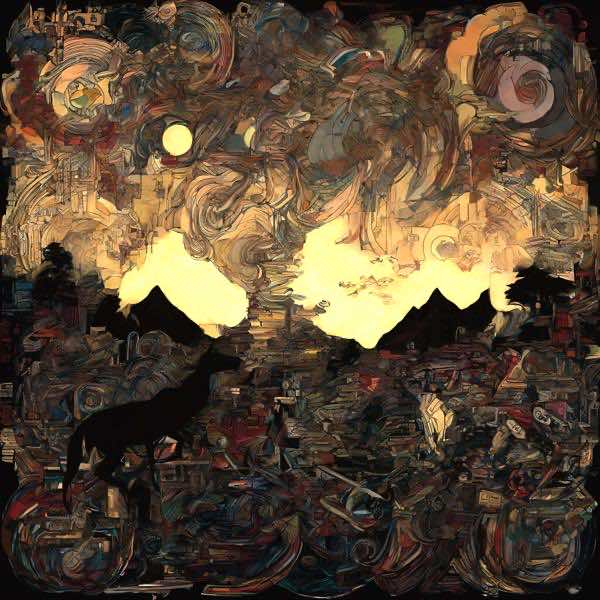 これらの画像は通常の AI アートとはちがう独自の方法を使って作っています. AI アートは AI にプロンプト (または呪文) とよばれる英語の記述をあたえて作画した画像ですが, Stable Diffusion,DALL・E 2,Midjourney などの AI プログラムによって 2022 年に爆発的に普及しました. AI アートで望む画像を作るために通常は比較的細かい指示を与えます. しかしデイシンではおもに 1〜4 語程度の短いことばや造語を Stable Diffusion XL 1.0 (1024) を使用している OpenArt,NightCafe などのウェブサイトで使用して,そのプログラムがもつ知識をいかして自由に (ジェネラティブに,創発的に) 画像をつくらせています. コントラストの調整等はしていますが,描きなおさせたり加筆したりするようなことはしていません.