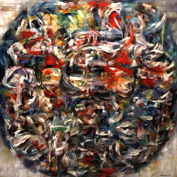 制作者と AI (AI アート作成用のプログラム Stable Diffusion XL 1.0 (1024)) とからなるアートユニット カナブストラクド によるアート画像です.そのプログラムに「Kanabstracd Accimboldo」ということば (prompt) をあたえて創造させました.