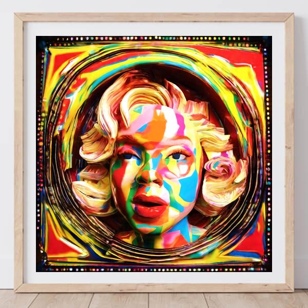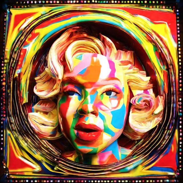 制作者と AI (AI アート作成用のプログラム Stable Diffusion XL 1.0 (1024)) とからなるアートユニット カナブストラクド によるアート画像です.そのプログラムに「Kanabstracd 3D monroe」ということば (prompt) をあたえて創造させました. 負のプロンプトとして「monroe plain_gray」を指定しています.