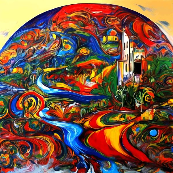 制作者と AI (AI アート作成用のプログラム Stable Diffusion XL 1.0 (1024)) とからなるアートユニット カナブストラクド によるアート画像です.そのプログラムに「Kanabstracd Picasbia」ということば (prompt) をあたえて創造させました. 負のプロンプトとして「squares」を指定しています.