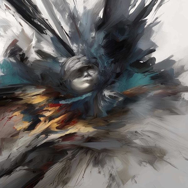 これらの画像は通常の AI アートとはちがう独自の方法を使って作っています. AI アートは AI にプロンプト (または呪文) とよばれる英語の記述をあたえて作画した画像ですが, Stable Diffusion,DALL・E 2,Midjourney などの AI プログラムによって 2022 年に爆発的に普及しました. AI アートで望む画像を作るために通常は比較的細かい指示を与えます. しかしデイシンではおもに 1〜4 語程度の短いことばや造語を Stable Diffusion XL 1.0 (1024) を使用している OpenArt,NightCafe などのウェブサイトで使用して,そのプログラムがもつ知識をいかして自由に (ジェネラティブに,創発的に) 画像をつくらせています. コントラストの調整等はしていますが,描きなおさせたり加筆したりするようなことはしていません.