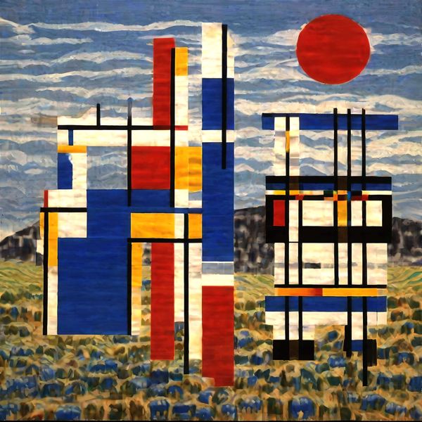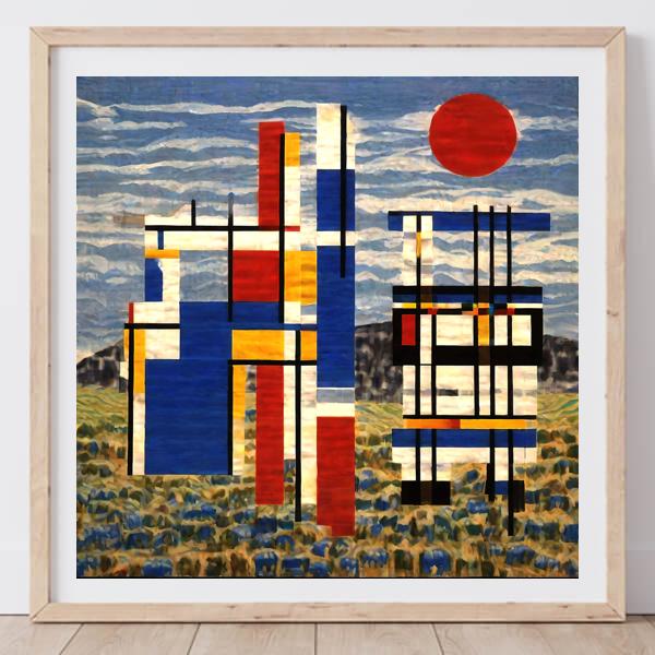 制作者と AI (AI アート作成用のプログラム Stable Diffusion XL 1.0 (1024)) とからなるアートユニット カナブストラクド によるアート画像です.そのプログラムに「Yasusi_Kanada Mondrian」ということば (prompt) をあたえて創造させました. 負のプロンプトとして「Mondrian」を指定しています.
