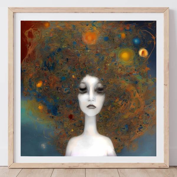 In AI art, the images generated are usually quite rough—about the size of an A6 print (roughly 500–1000 pixels on each side). To make them suitable for presentation, I use a technique called super-resolution, which increases the resolution 4–8 times higher than the original, adding finer detail. However, please note that the resolution of the product image shown above is about the same as the original and has not been upscaled.