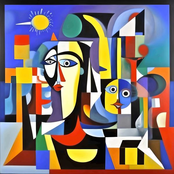 制作者と AI (AI アート作成用のプログラム Stable Diffusion XL 1.0 (1024)) とからなるアートユニット カナブストラクド によるアート画像です.そのプログラムに「Kanabstracd surrealism Picasbia」ということば (prompt) をあたえて創造させました. 負のプロンプトとして「bows」を指定しています.