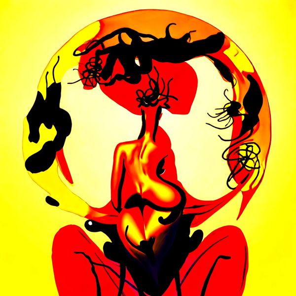 これらの画像は通常の AI アートとはちがう独自の方法を使って作っています. AI アートは AI にプロンプト (または呪文) とよばれる英語の記述をあたえて作画した画像ですが, Stable Diffusion,DALL・E 2,Midjourney などの AI プログラムによって 2022 年に爆発的に普及しました. AI アートで望む画像を作るために通常は比較的細かい指示を与えます. しかしデイシンではおもに 1〜4 語程度の短いことばや造語を Stable Diffusion XL 1.0 (1024) を使用している OpenArt,NightCafe などのウェブサイトで使用して,そのプログラムがもつ知識をいかして自由に (ジェネラティブに,創発的に) 画像をつくらせています. コントラストの調整等はしていますが,描きなおさせたり加筆したりするようなことはしていません.