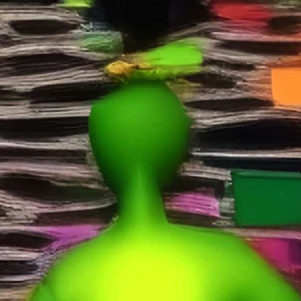 これらの画像は通常の AI アートとはちがう独自の方法を使って作っています. AI アートは AI にプロンプト (または呪文) とよばれる英語の記述をあたえて作画した画像ですが, Stable Diffusion,DALL・E 2,Midjourney などの AI プログラムによって 2022 年に爆発的に普及しました. AI アートで望む画像を作るために通常は比較的細かい指示を与えます. しかしデイシンではおもに 1〜4 語程度の短いことばや造語を Stable Diffusion XL 1.0 (1024) を使用している OpenArt,NightCafe などのウェブサイトで使用して,そのプログラムがもつ知識をいかして自由に (ジェネラティブに,創発的に) 画像をつくらせています. コントラストの調整等はしていますが,描きなおさせたり加筆したりするようなことはしていません.