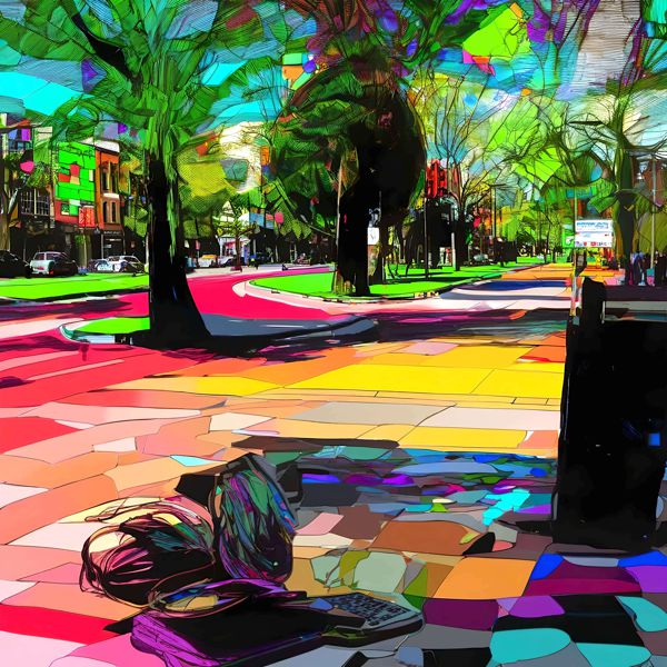 制作者と AI (AI アート作成用のプログラム Stable Diffusion XL 1.0 (1024)) とからなるアートユニット カナブストラクド によるアート画像です.そのプログラムに「Kanabstracd Seurat」ということば (prompt) をあたえて創造させました. 負のプロンプトとして「Seurat arrows」を指定しています.