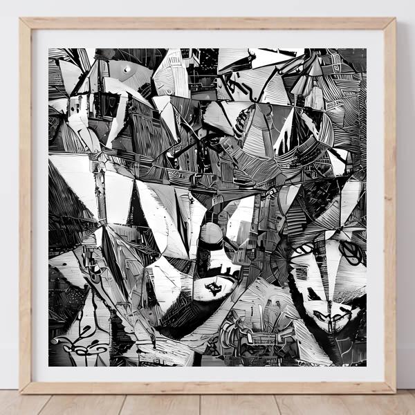 In AI art, the images generated are usually quite rough—about the size of an A6 print (roughly 500–1000 pixels on each side). To make them suitable for presentation, I use a technique called super-resolution, which increases the resolution 4–8 times higher than the original, adding finer detail. However, please note that the resolution of the product image shown above is about the same as the original and has not been upscaled.