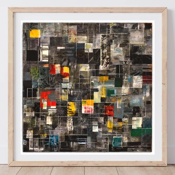 AI アートでは通常 A6 サイズ相当くらい (縦横 500〜1000 ピクセルくらい) の荒い画像しかつくれないので,超解像という技術をつかって原画より解像度を 4〜8 倍に (こまかく) しています. ただし,上の商品画像の解像度は原画と同程度なのでご注意ください.
