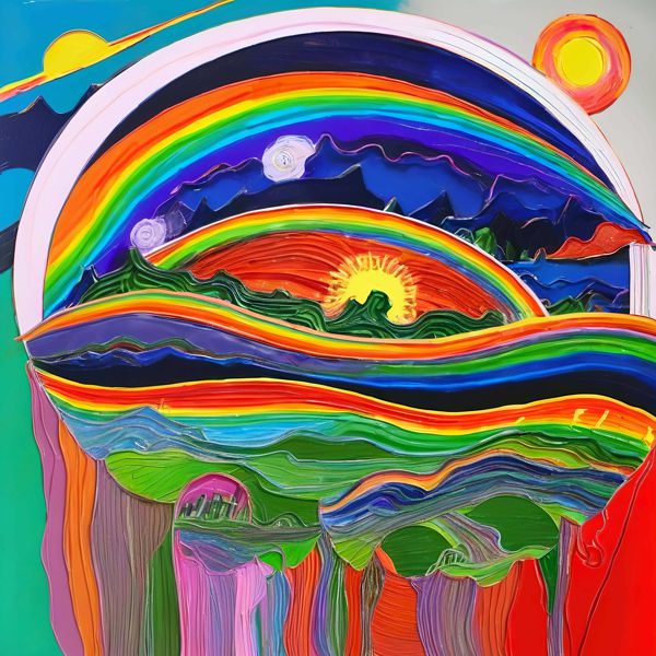 制作者と AI (AI アート作成用のプログラム Stable Diffusion XL 1.0 (1024)) とからなるアートユニット カナブストラクド によるアート画像です.そのプログラムに「Kanabstracd surrealism Hundertwasser」ということば (prompt) をあたえて創造させました. 負のプロンプトとして「Hundertwasser checker」を指定しています.