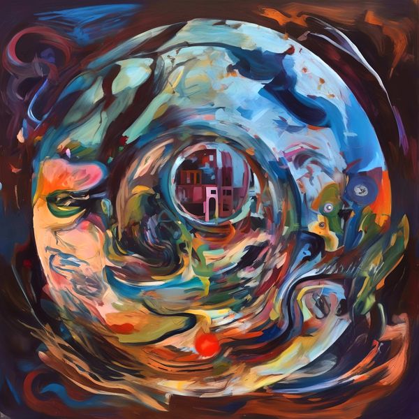 制作者と AI (AI アート作成用のプログラム Stable Diffusion XL 1.0 (1024)) とからなるアートユニット カナブストラクド によるアート画像です.そのプログラムに「Kanabstracd surrealism Klimt」ということば (prompt) をあたえて創造させました. 負のプロンプトとして「Klimt mesh」を指定しています.