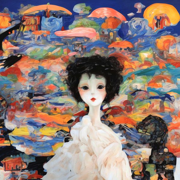 These images are created by our original method, which is different from usual AI art images. AI art images are created by giving English description called prompt. Many AI art images were created by using AI art programs such as Stable Diffusion,DALL・E 2,or Midjourney in 2022. To create expected images by AI art, a detailed description is usually given. However, we usually give only a few words or a coined word to web sites of OpenArt, NightCafe, etc., which use Stable Diffusion XL 1.0 (1024); That is, the program create images generatively and emergently using the knowledge of the program freely. The contrast of created images are adjusted, but they were not modified.