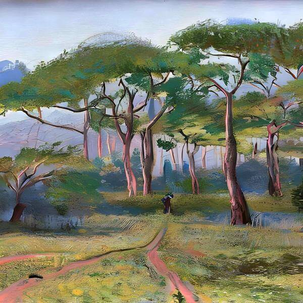 This image was created by ‘anonymous,’ an art unit formed by the creator and the AI (Stable Diffusion 2.1 (768), a program for creating AI artworks). I gave the program the word ‘painting dawng’ as a prompt and let it create.