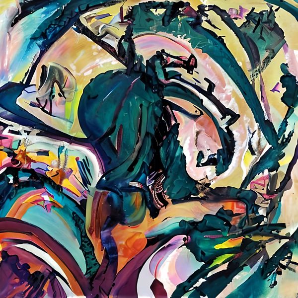 制作者と AI (AI アート作成用のプログラム Stable Diffusion 2.1 (768)) とからなるアートユニット anonymous による画家風のアート画像です.そのプログラムに「Kandinsky」ということば (prompt) をあたえて創造させました. 負のプロンプトとして「Kandinsky Klee」を指定しています.