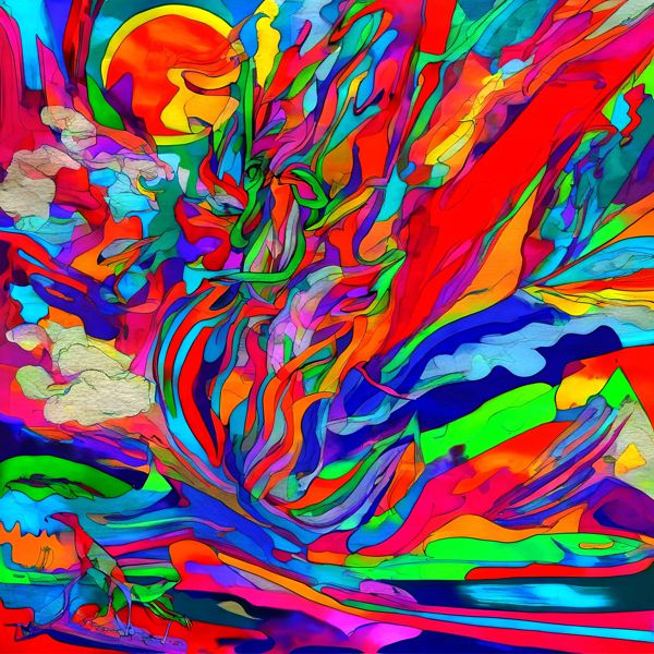 これらの画像は通常の AI アートとはちがう独自の方法を使って作っています. AI アートは AI にプロンプト (または呪文) とよばれる英語の記述をあたえて作画した画像ですが, Stable Diffusion,DALL・E 2,Midjourney などの AI プログラムによって 2022 年に爆発的に普及しました. AI アートで望む画像を作るために通常は比較的細かい指示を与えます. しかしデイシンではおもに 1〜4 語程度の短いことばや造語を Stable Diffusion XL 1.0 (1024) を使用している OpenArt,NightCafe などのウェブサイトで使用して,そのプログラムがもつ知識をいかして自由に (ジェネラティブに,創発的に) 画像をつくらせています. コントラストの調整等はしていますが,描きなおさせたり加筆したりするようなことはしていません.