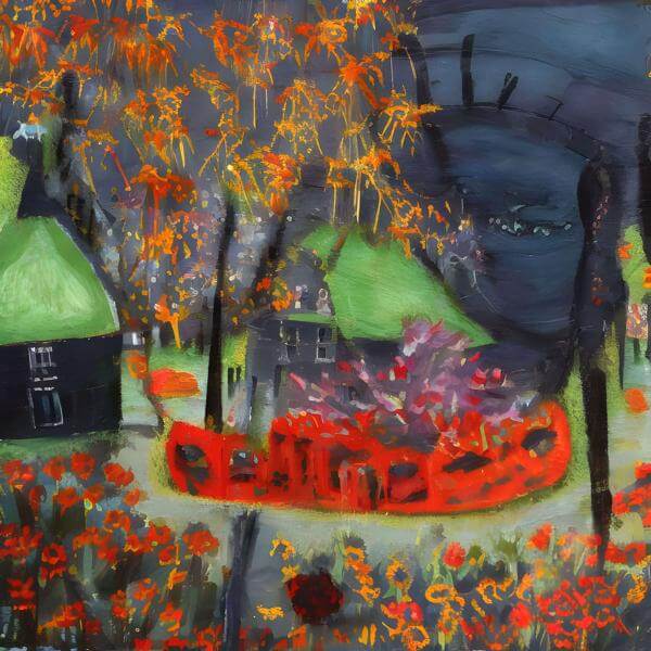 制作者と AI (AI アート作成用のプログラム ) とからなるアートユニット anonymous による画家風のアート画像です.そのプログラムに「painting 3」ということば (prompt) をあたえて創造させました.