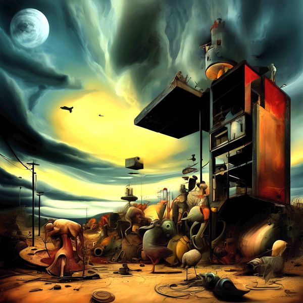 制作者と AI (AI アート作成用のプログラム Stable Diffusion XL 1.0 (1024)) とからなるアートユニット カナブストラクド によるアート画像です.そのプログラムに「Kanabstracd modern surrealism」ということば (prompt) をあたえて創造させました. 負のプロンプトとして「surrealis bows」を指定しています.