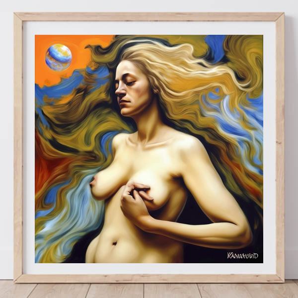 制作者と AI (AI アート作成用のプログラム Stable Diffusion XL 1.0 (1024)) とからなるアートユニット カナブストラクド によるアート画像です.そのプログラムに「Kanabstracd absurd_realism Venus」ということば (prompt) をあたえて創造させました.