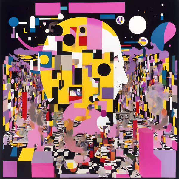 制作者と AI (AI アート作成用のプログラム Stable Diffusion XL 1.0 (1024)) とからなるアートユニット カナブストラクド によるアート画像です.そのプログラムに「Kanabstracd absurdism Pollock」ということば (prompt) をあたえて創造させました. 負のプロンプトとして「Pollock bows」を指定しています.
