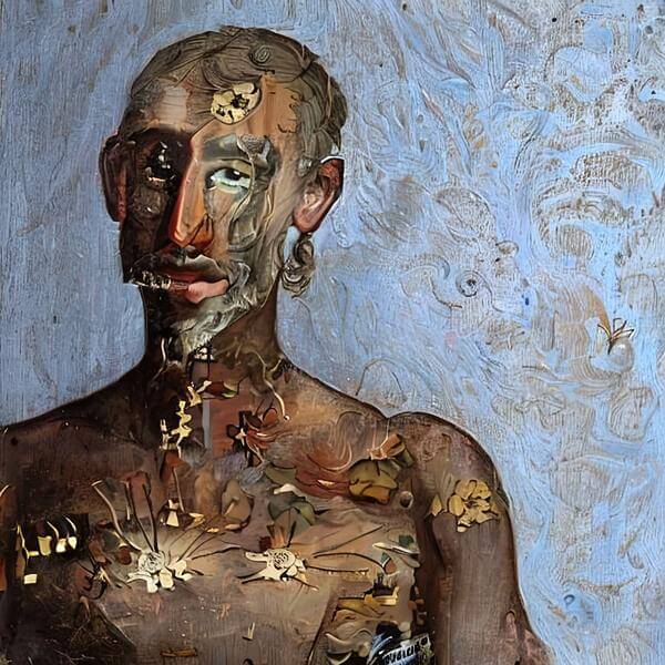 This image was created by ‘anonymous,’ an art unit formed by the creator and the AI (, a program for creating AI artworks). I gave the program the word ‘Arcimboldo’ as a prompt and let it create. Also “Arcimboldo” was used as the negative prompt.