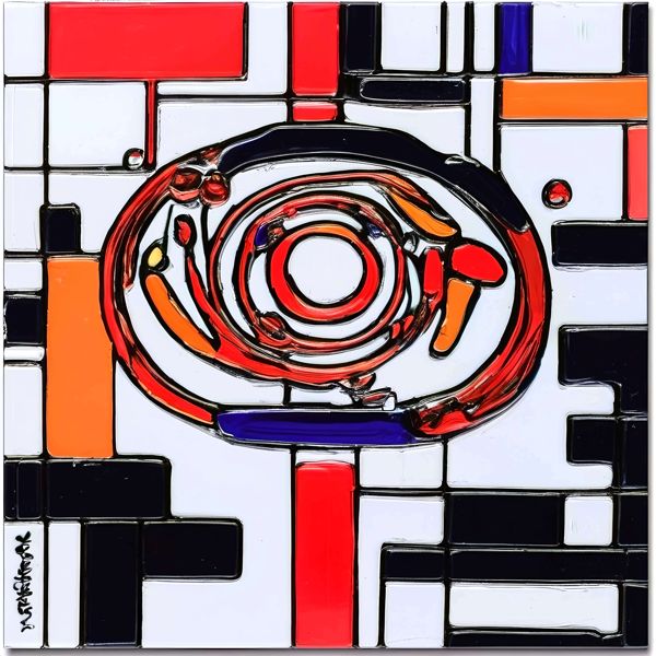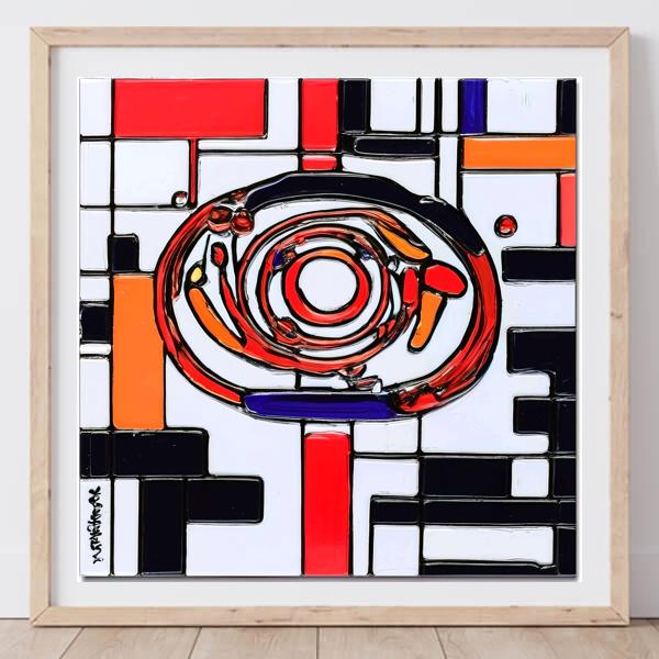 制作者と AI (AI アート作成用のプログラム Stable Diffusion XL 1.0 (1024)) とからなるアートユニット カナブストラクド によるアート画像です.そのプログラムに「Kanabstracd Mondrian」ということば (prompt) をあたえて創造させました. 負のプロンプトとして「Mondrian mesh」を指定しています.