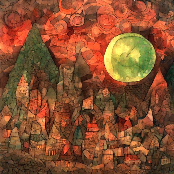 制作者と AI (AI アート作成用のプログラム Stable Diffusion XL 1.0 (1024)) とからなるアートユニット anonymous による画家風のアート画像です.そのプログラムに「Klee」ということば (prompt) をあたえて創造させました. 負のプロンプトとして「Mondrian」を指定しています.