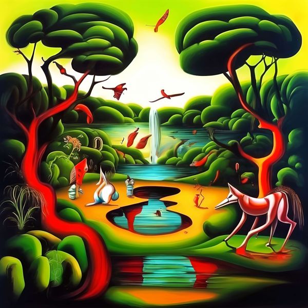This image was created by ‘Kanabstracd,’ an art unit formed by the creator and the AI (Stable Diffusion XL 1.0 (1024), a program for creating AI artworks). I gave the program the word ‘Kanabstracd surrealism Rousseau’ as a prompt and let it create. Also “Rousseau coarse_mesh ” was used as the negative prompt.