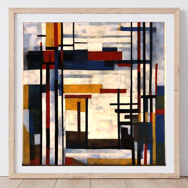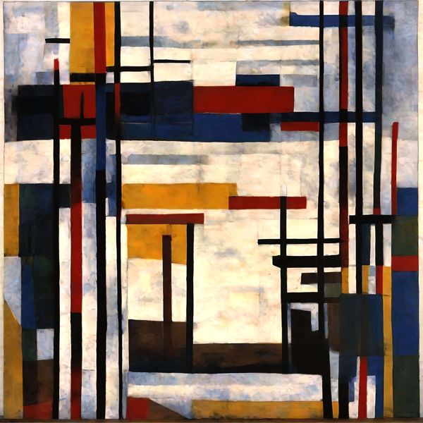 制作者と AI (AI アート作成用のプログラム Stable Diffusion XL 1.0 (1024)) とからなるアートユニット カナブストラクド によるアート画像です.そのプログラムに「Yasusi_Kanada Mondrian」ということば (prompt) をあたえて創造させました. 負のプロンプトとして「Mondrian」を指定しています.
