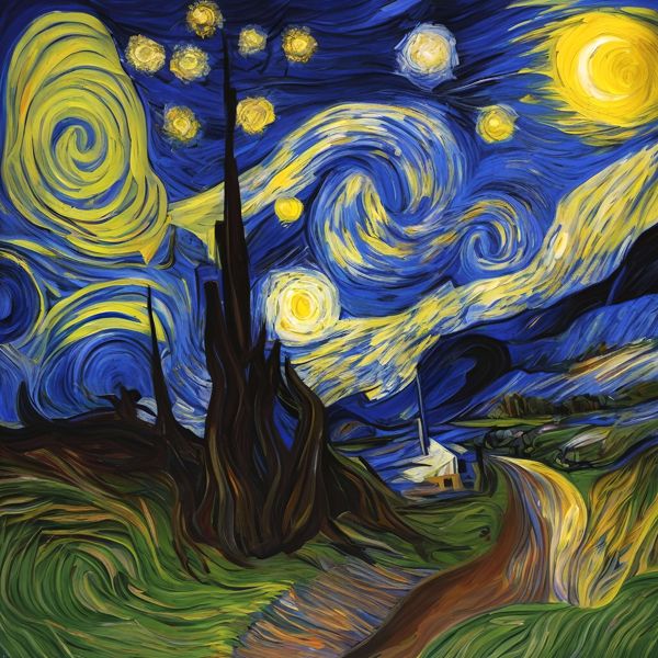 これらの画像は通常の AI アートとはちがう独自の方法を使って作っています. AI アートは AI にプロンプト (または呪文) とよばれる英語の記述をあたえて作画した画像ですが, Stable Diffusion,DALL・E 2,Midjourney などの AI プログラムによって 2022 年に爆発的に普及しました. AI アートで望む画像を作るために通常は比較的細かい指示を与えます. しかしデイシンではおもに 1〜4 語程度の短いことばや造語を Stable Diffusion XL 1.0 (1024) を使用している OpenArt,NightCafe などのウェブサイトで使用して,そのプログラムがもつ知識をいかして自由に (ジェネラティブに,創発的に) 画像をつくらせています. コントラストの調整等はしていますが,描きなおさせたり加筆したりするようなことはしていません.