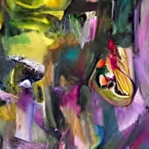 制作者と AI (AI アート作成用のプログラム ) とからなるアートユニット anonymous による画家風のアート画像です.絵文字と短い造語のくみあわせを AI にあたえたら,このような絵を描きました.