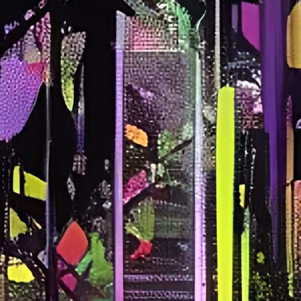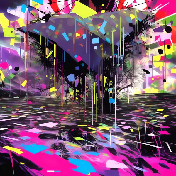 これらの画像は通常の AI アートとはちがう独自の方法を使って作っています. AI アートは AI にプロンプト (または呪文) とよばれる英語の記述をあたえて作画した画像ですが, Stable Diffusion,DALL・E 2,Midjourney などの AI プログラムによって 2022 年に爆発的に普及しました. AI アートで望む画像を作るために通常は比較的細かい指示を与えます. しかしデイシンではおもに 1〜4 語程度の短いことばや造語を Stable Diffusion XL 1.0 (1024) を使用している OpenArt,NightCafe などのウェブサイトで使用して,そのプログラムがもつ知識をいかして自由に (ジェネラティブに,創発的に) 画像をつくらせています. コントラストの調整等はしていますが,描きなおさせたり加筆したりするようなことはしていません.