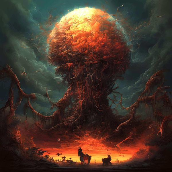 制作者と AI (AI アート作成用のプログラム Stable Diffusion XL 1.0 (1024)) とからなるアートユニット カナブストラクド によるアート画像です.そのプログラムに「Kanabstracd surrealism intricate_thunder」ということば (prompt) をあたえて創造させました. 負のプロンプトとして「intricate_thunder」を指定しています.