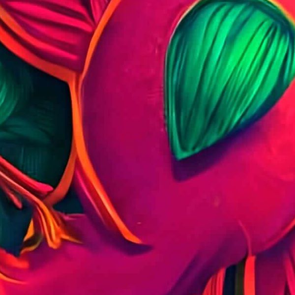 AI アートでは通常 A6 サイズ相当くらい (縦横 500〜1000 ピクセルくらい) の荒い画像しかつくれないので,超解像という技術をつかって原画より解像度を 4〜8 倍に (こまかく) しています. ただし,上の商品画像の解像度は原画と同程度なのでご注意ください.