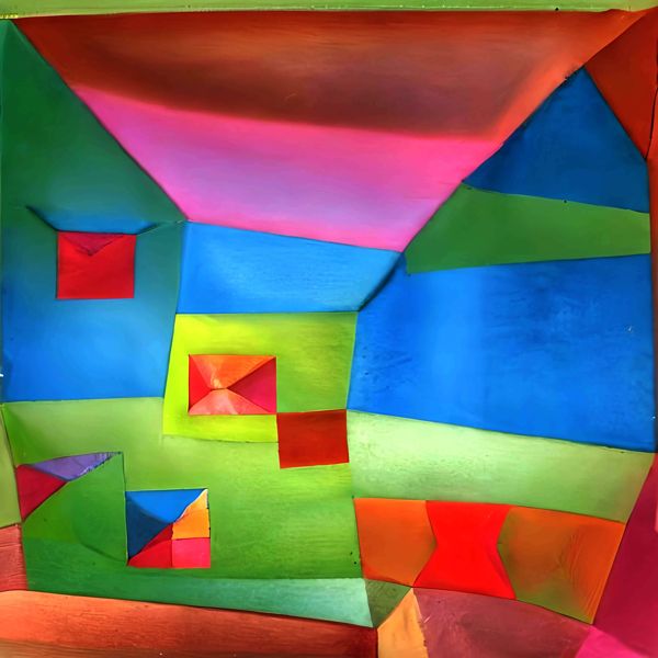 制作者と AI (AI アート作成用のプログラム Stable Diffusion 2.1 (768)) とからなるアートユニット anonymous による画家風のアート画像です.そのプログラムに「Klee」ということば (prompt) をあたえて創造させました. 負のプロンプトとして「Pollock」を指定しています.