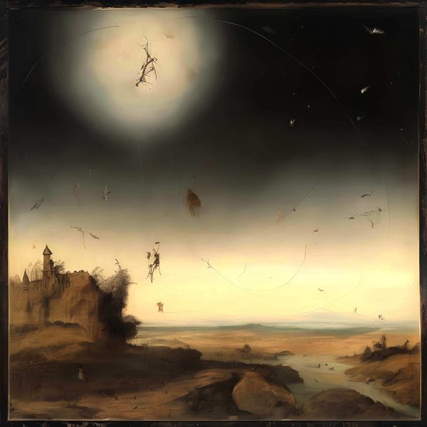 制作者と AI (AI アート作成用のプログラム Stable Diffusion XL 1.0 (1024)) とからなるアートユニット カナブストラクド によるアート画像です.そのプログラムに「Kanabstracd surrealism Hieronymus_Bosch」ということば (prompt) をあたえて創造させました. 負のプロンプトとして「surrealism Hieronymus_Bosch hexagons」を指定しています.