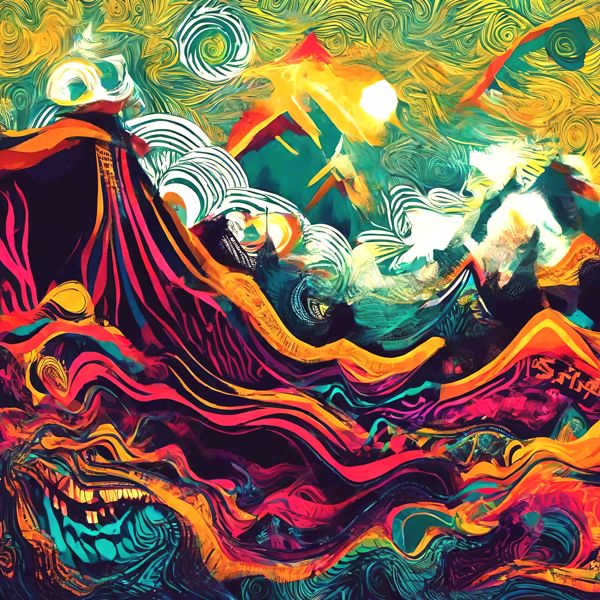 これらの画像は通常の AI アートとはちがう独自の方法を使って作っています. AI アートは AI にプロンプト (または呪文) とよばれる英語の記述をあたえて作画した画像ですが, Stable Diffusion,DALL・E 2,Midjourney などの AI プログラムによって 2022 年に爆発的に普及しました. AI アートで望む画像を作るために通常は比較的細かい指示を与えます. しかしデイシンではおもに 1〜4 語程度の短いことばや造語を Stable Diffusion XL 1.0 (1024) を使用している OpenArt,NightCafe などのウェブサイトで使用して,そのプログラムがもつ知識をいかして自由に (ジェネラティブに,創発的に) 画像をつくらせています. コントラストの調整等はしていますが,描きなおさせたり加筆したりするようなことはしていません.