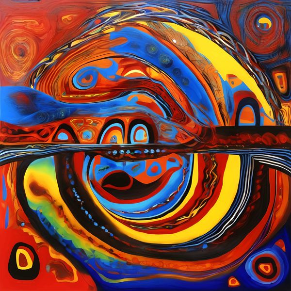 This image was created by ‘Kanabstracd,’ an art unit formed by the creator and the AI (Stable Diffusion XL 1.0 (1024), a program for creating AI artworks). I gave the program the word ‘Kanabstracd Surreal Aboriginal’ as a prompt and let it create.