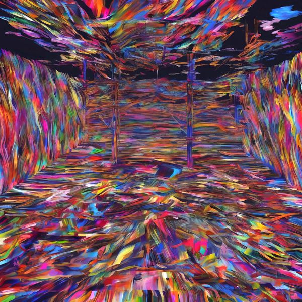 これらの画像は通常の AI アートとはちがう独自の方法を使って作っています. AI アートは AI にプロンプト (または呪文) とよばれる英語の記述をあたえて作画した画像ですが, Stable Diffusion,DALL・E 2,Midjourney などの AI プログラムによって 2022 年に爆発的に普及しました. AI アートで望む画像を作るために通常は比較的細かい指示を与えます. しかしデイシンではおもに 1〜4 語程度の短いことばや造語を Stable Diffusion XL 1.0 (1024) を使用している OpenArt,NightCafe などのウェブサイトで使用して,そのプログラムがもつ知識をいかして自由に (ジェネラティブに,創発的に) 画像をつくらせています. コントラストの調整等はしていますが,描きなおさせたり加筆したりするようなことはしていません.