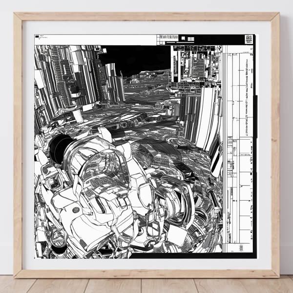 AI アートでは通常 A6 サイズ相当くらい (縦横 500〜1000 ピクセルくらい) の荒い画像しかつくれないので,超解像という技術をつかって原画より解像度を 4〜8 倍に (こまかく) しています. ただし,上の商品画像の解像度は原画と同程度なのでご注意ください.