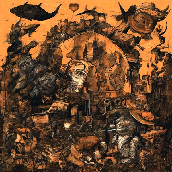 これらの画像は通常の AI アートとはちがう独自の方法を使って作っています. AI アートは AI にプロンプト (または呪文) とよばれる英語の記述をあたえて作画した画像ですが, Stable Diffusion,DALL・E 2,Midjourney などの AI プログラムによって 2022 年に爆発的に普及しました. AI アートで望む画像を作るために通常は比較的細かい指示を与えます. しかしデイシンではおもに 1〜4 語程度の短いことばや造語を Stable Diffusion XL 1.0 (1024) を使用している OpenArt,NightCafe などのウェブサイトで使用して,そのプログラムがもつ知識をいかして自由に (ジェネラティブに,創発的に) 画像をつくらせています. コントラストの調整等はしていますが,描きなおさせたり加筆したりするようなことはしていません.