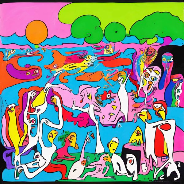 This image was created by ‘Kanabstracd,’ an art unit formed by the creator and the AI (Stable Diffusion XL 1.0 (1024), a program for creating AI artworks). I gave the program the word ‘Kanabstracd absurdism Seurat’ as a prompt and let it create. Also “mesh ” was used as the negative prompt.