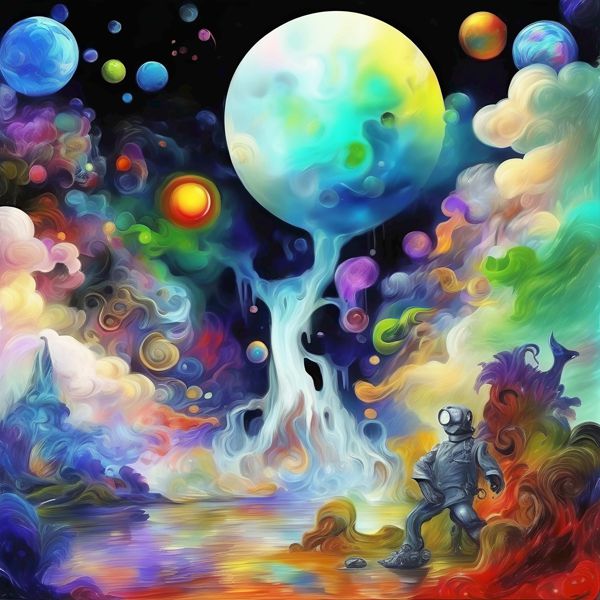 制作者と AI (AI アート作成用のプログラム Stable Diffusion XL 1.0 (1024)) とからなるアートユニット カナブストラクド によるアート画像です.そのプログラムに「Kanabstracd fantasy absurd_realism」ということば (prompt) をあたえて創造させました. 負のプロンプトとして「barbeds」を指定しています.