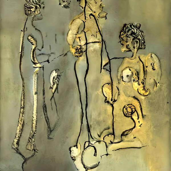これらの画像は通常の AI アートとはちがう独自の方法を使って作っています. AI アートは AI にプロンプト (または呪文) とよばれる英語の記述をあたえて作画した画像ですが, Stable Diffusion,DALL・E 2,Midjourney などの AI プログラムによって 2022 年に爆発的に普及しました. AI アートで望む画像を作るために通常は比較的細かい指示を与えます. しかしデイシンではおもに 1〜4 語程度の短いことばや造語を Stable Diffusion 2.1 (768) を使用している OpenArt,NightCafe などのウェブサイトで使用して,そのプログラムがもつ知識をいかして自由に (ジェネラティブに,創発的に) 画像をつくらせています. コントラストの調整等はしていますが,描きなおさせたり加筆したりするようなことはしていません.